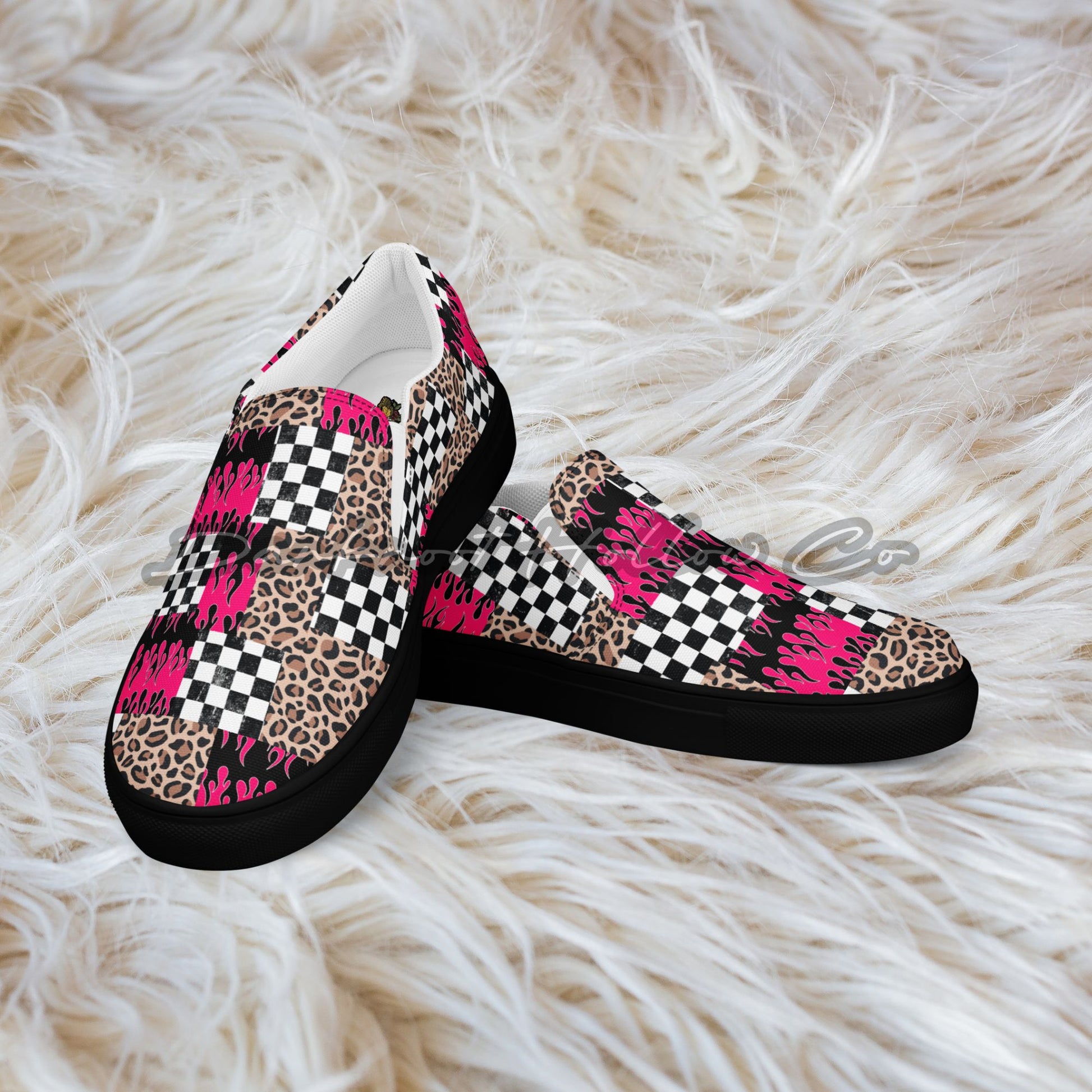 Edgy pink slip-on canvas shoes